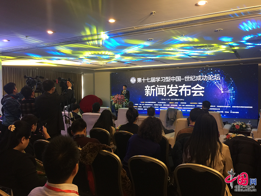11月28日上午9点,第十七届“学习型中国—世纪成功论坛”新闻发布会在北京国家会议中心正式举行。论坛组委会宣布主题为“未来已来Ⅲ•生机”的第十七届“学习型中国—世纪成功论坛”将于2016年12月30日--2017年1月1日在北京九华山庄隆重召开。